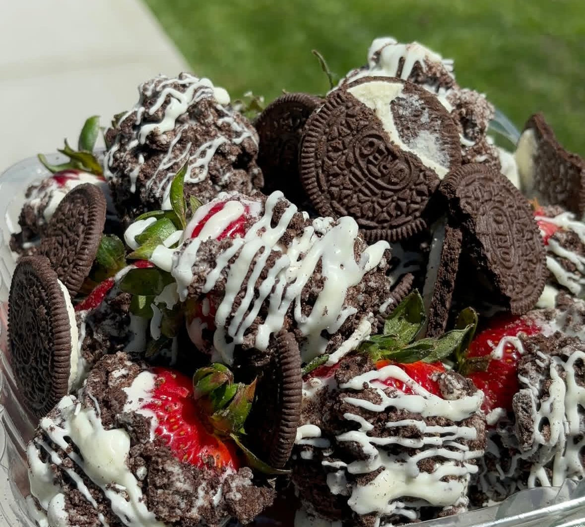Oreo Krunch—Fresh strawberries coated in creamy chocolate and Oreo krunch, delivering the perfect balance of smooth, sweet, and crunch.